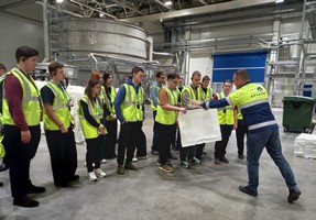 Полотняно-заводская бумажная мануфактура — это дно из старейших предприятий отечественной целлюлозно-бумажной промышленности, созданное по указу Петра I в 1718 году. Сейчас предприятие производит бумагу и картон из макулатуры, а ассортимент продукции включает более 800 наименований. Во время экскурсии студенты смогли ознакомиться с технологией переработки макулатуры, с работой бумагоделательных машин и устройствами по изготовлению бумажный изделий. При посещении расположенного рядом с предприятием музея бумаги «Бузеон» экскурсанты узнали историю бумаги и бумажного производства.
