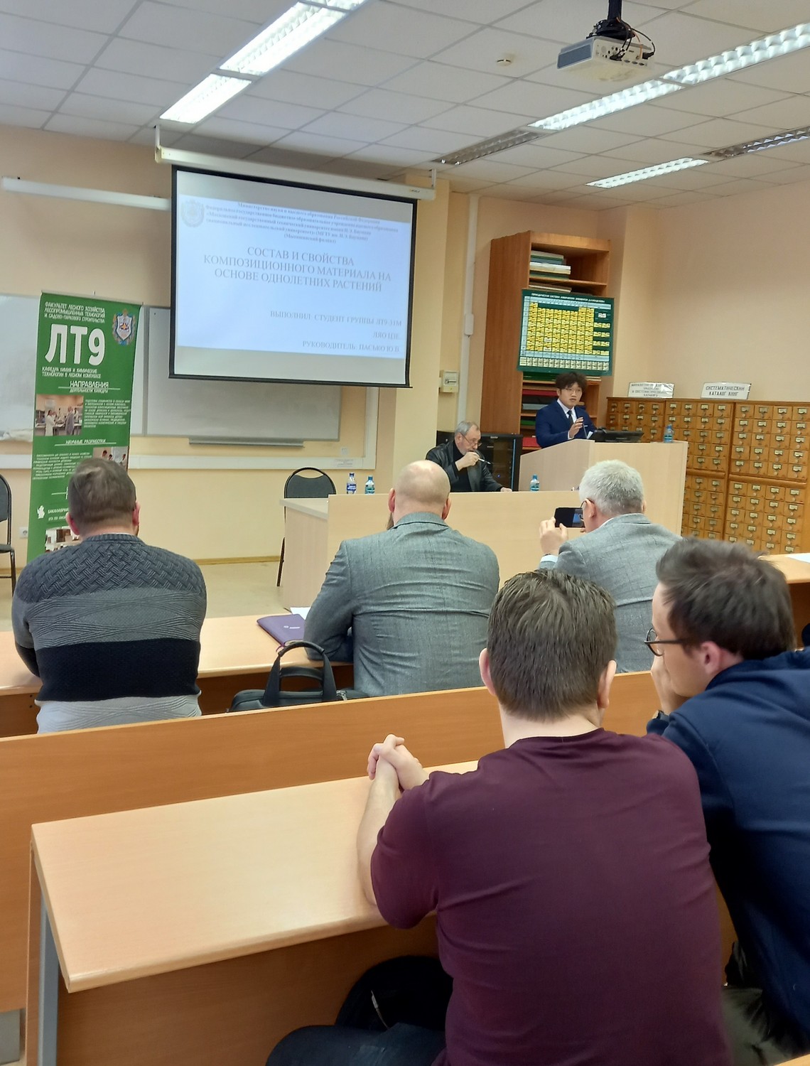 28 января 2025 годаНа заседании подсекции «Химические технологии в лесном комплексе» преподаватели и студенты кафедры ЛТ9-МФ доложили о результатах научных исследований, проводимых в 2025 г. Всего было представлено 13 докладов, тематика которых включала актуальные вопросы синтеза высокоэффективных, нетоксичных олигомеров, используемых в качестве основы клеев и связующих в производстве различного вида древесных материалов. Рассматривались вопросы использования недревесных растений в качестве сырья для производства плитных материалов и целлюлозы.