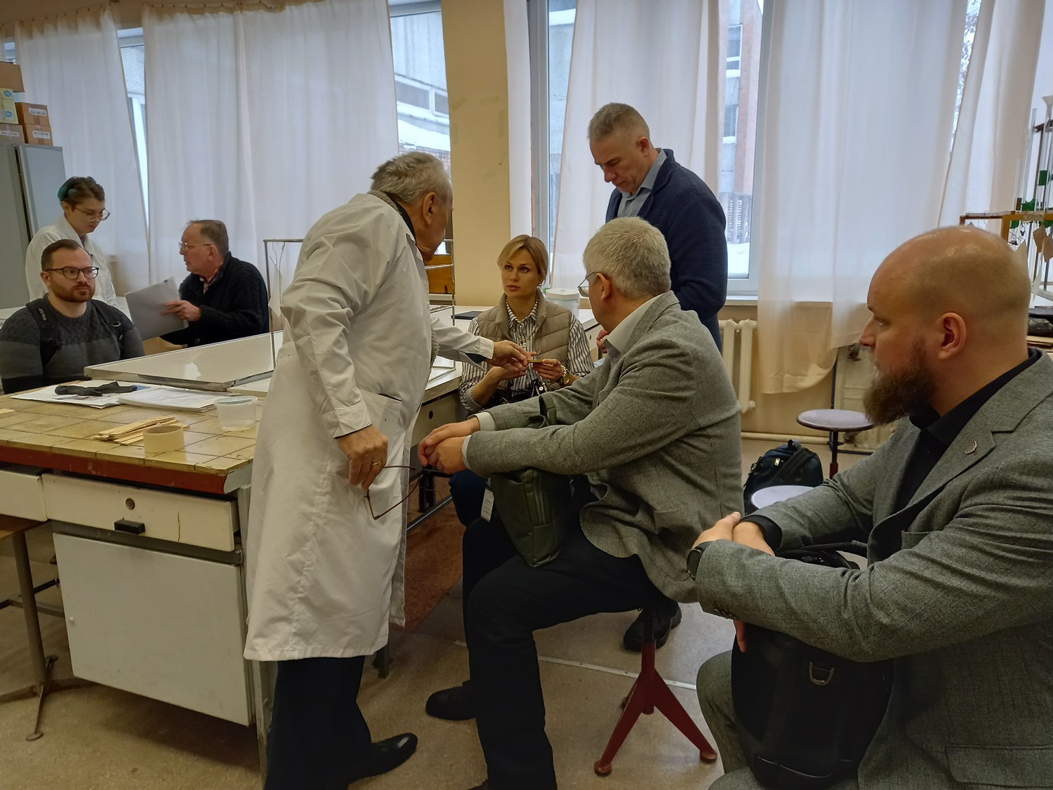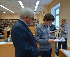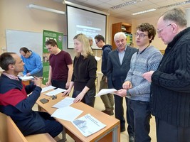 Особый интерес вызвал доклад ведущего инженера центра исследований и разработок ООО «Метадинея» Коровина Д. Ю., рассказавшего о возможностях цифрового анализа изображений при определении пропитывающей способности смол. Представители этой компании, сотрудничество с которой кафедра ведет на протяжении многих лет, после окончания выступлений и обсуждения стендовых докладов посетили наши лаборатории, где обсуждались вопросы дальнейшего взаимодействия. Профессор, д. т. н. Цветков В.Е. поделился с коллегами направлениями проводимых им исследований.