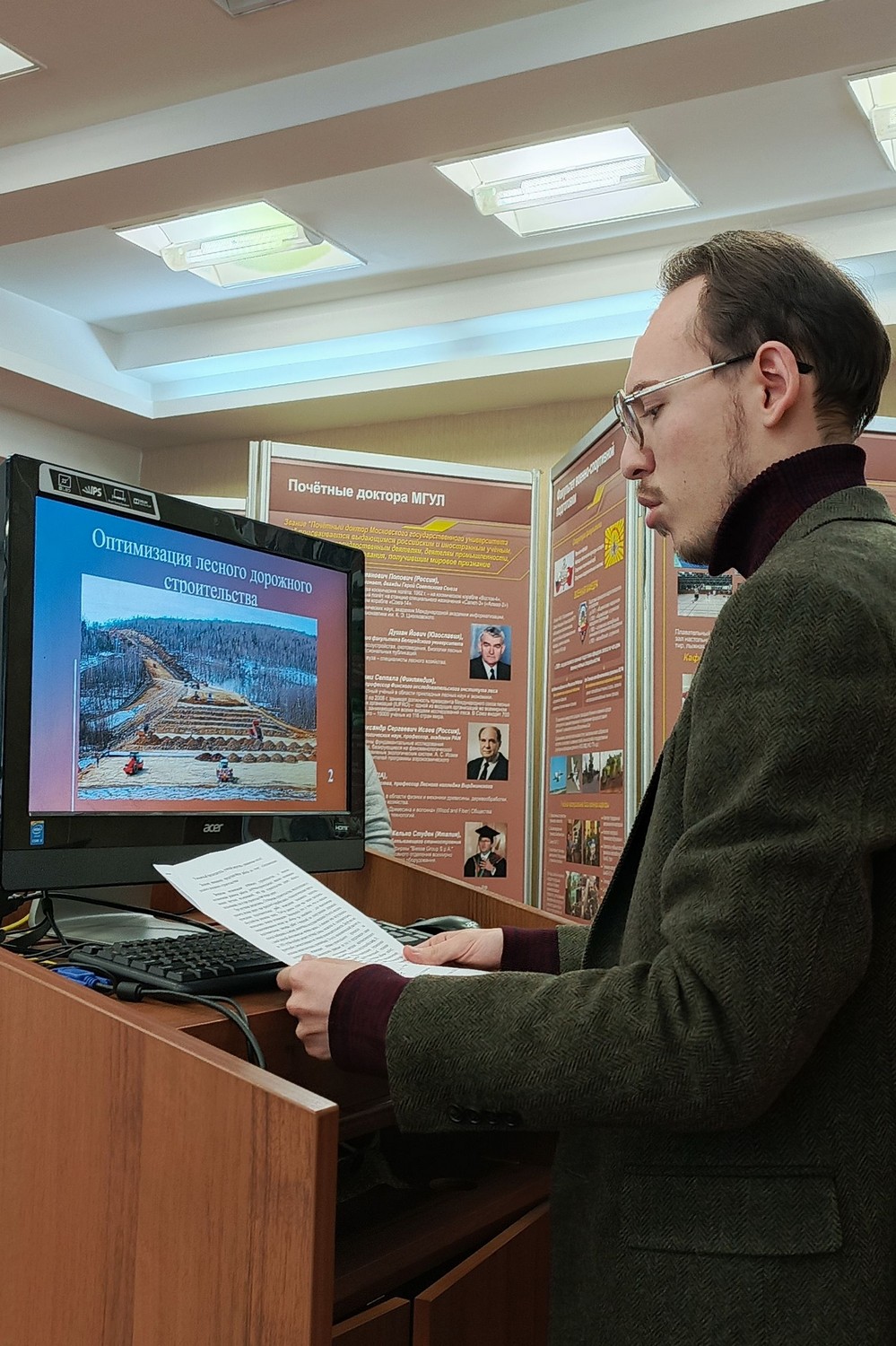 О.Ю. Солдатова, Д.Л. Фарион ЛТ4-41М, Д.В. Зубарев ЛТ4-61Б «Определение оптимального расположения валочно-пакетирующей машины на рабочей площадке по количеству доступных деревьев». Научный руководитель к.т.н. доцент А.В. Макаренко, к.т.н. доцент В.А. Борисов.