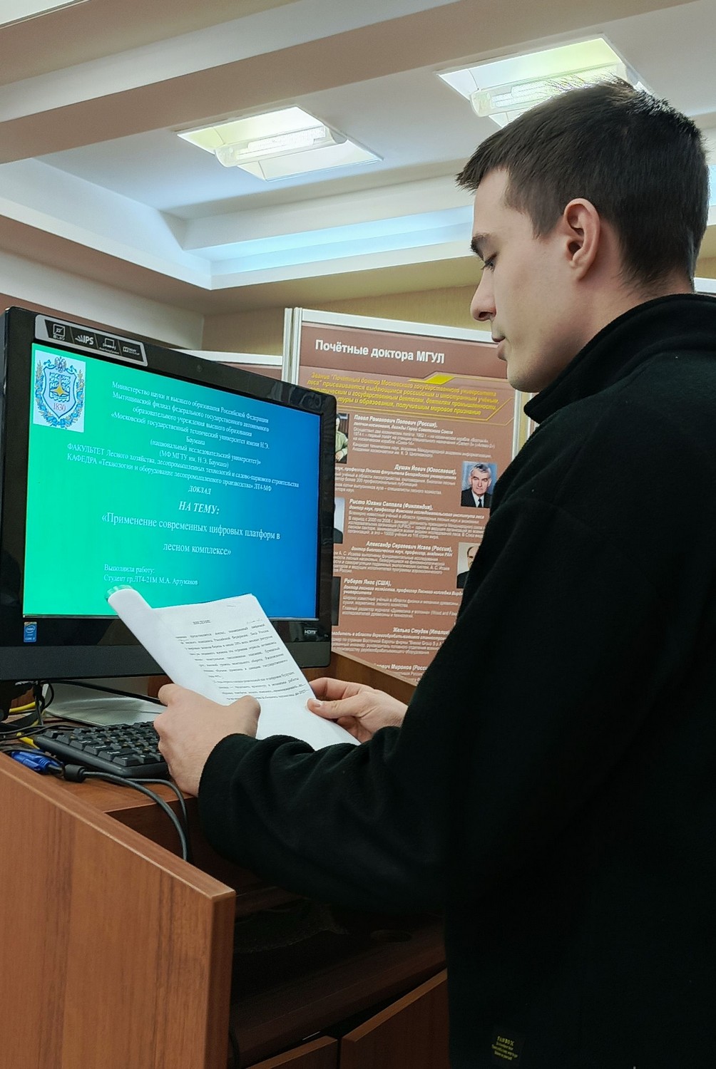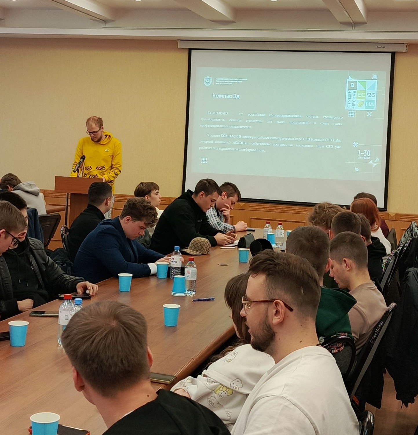 15 апреля 2026 годаВ зале факультета лесного хозяйства, лесопромышленных технологий и садово-паркового строительства (ауд. 1222) прошло заседание секции «Технологии и оборудование лесопромышленного производства» ежегодной Всероссийской научно-технической конференции «Студенческая научная весна», посвящённая 65-летию полёта Ю.А. Гагарина в космос.